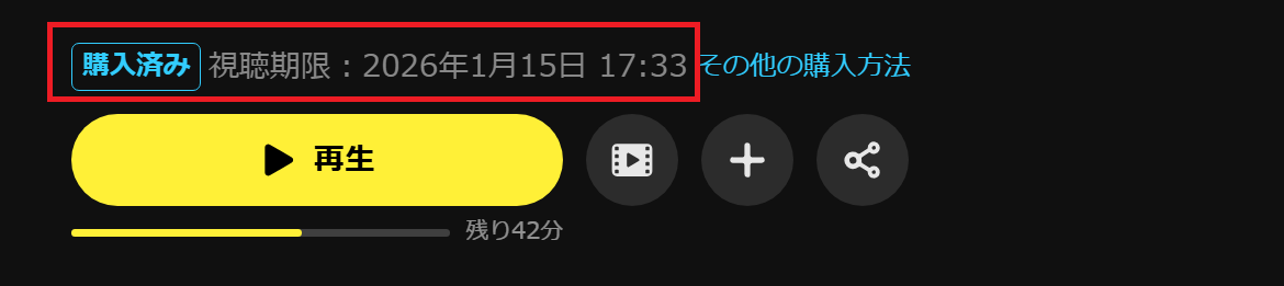 「初回の視聴」または「ダウンロード」を行っている場合、操作を行った日時を起点にし購入手続き時に表示された日数分が「視聴期限」として表示されます。