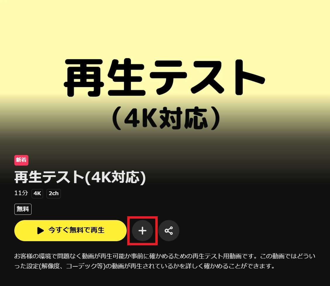 再生テスト(4K対応)動画を「お気に入り」に登録した後、DMM TVアプリで再生できるかどうかご確認ください。