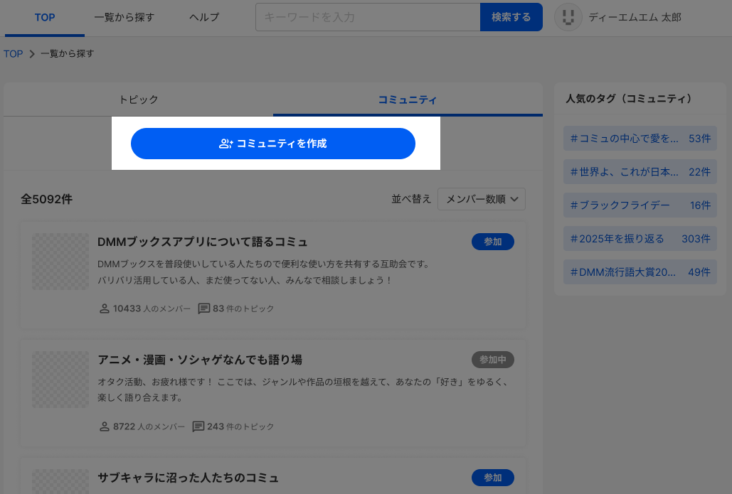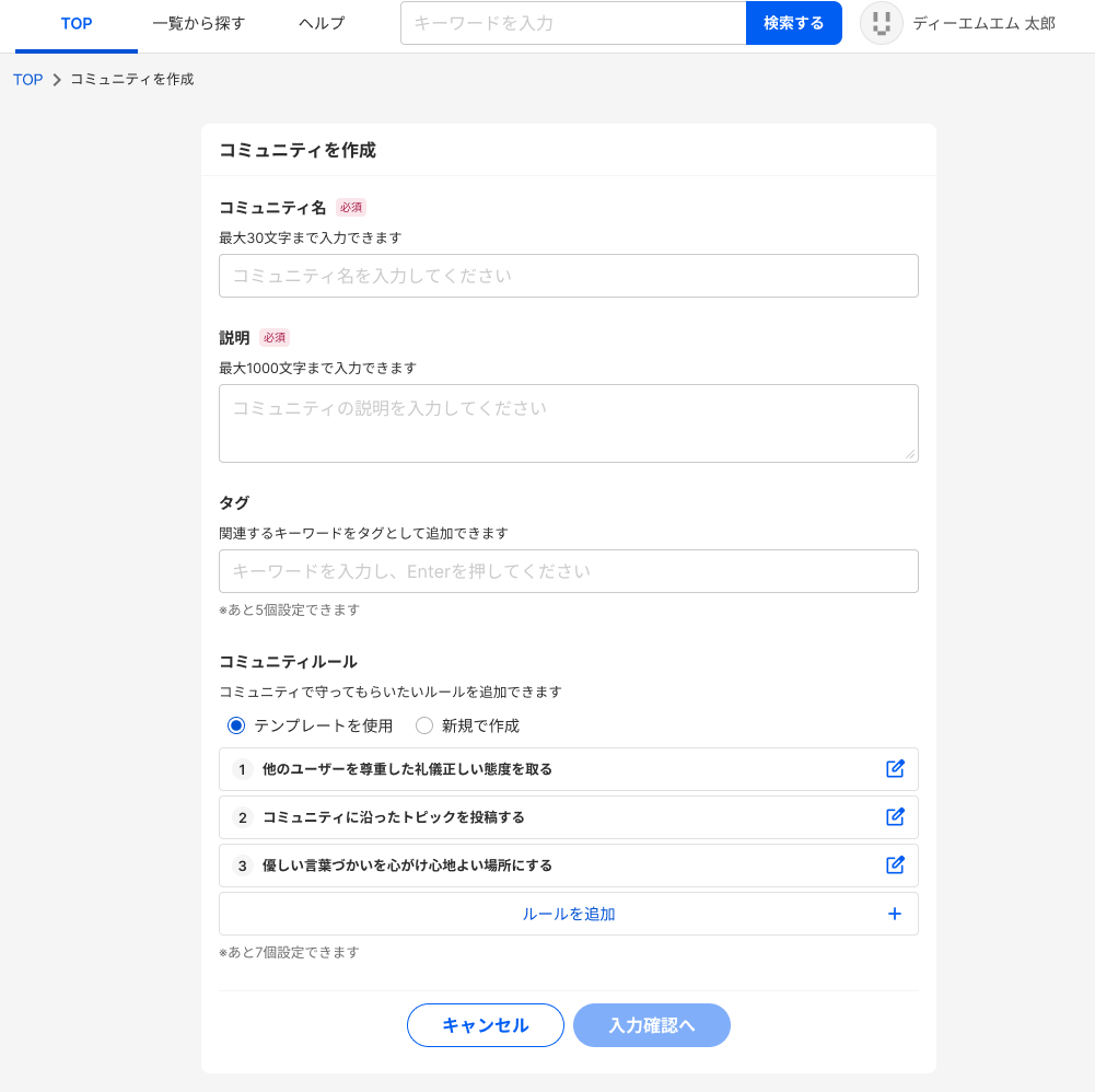 TOP > コミュニティ一覧 > コミュニティ作成ボタンを押す