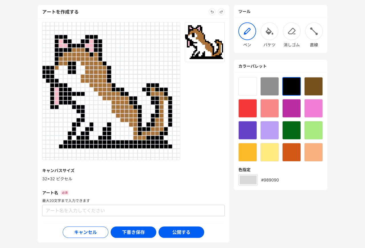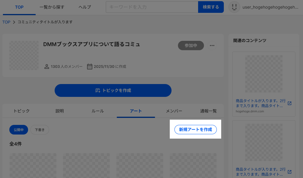 TOP > コミュニティトップ > アート > 新規アートを作成ボタンを押す > アートを作成する