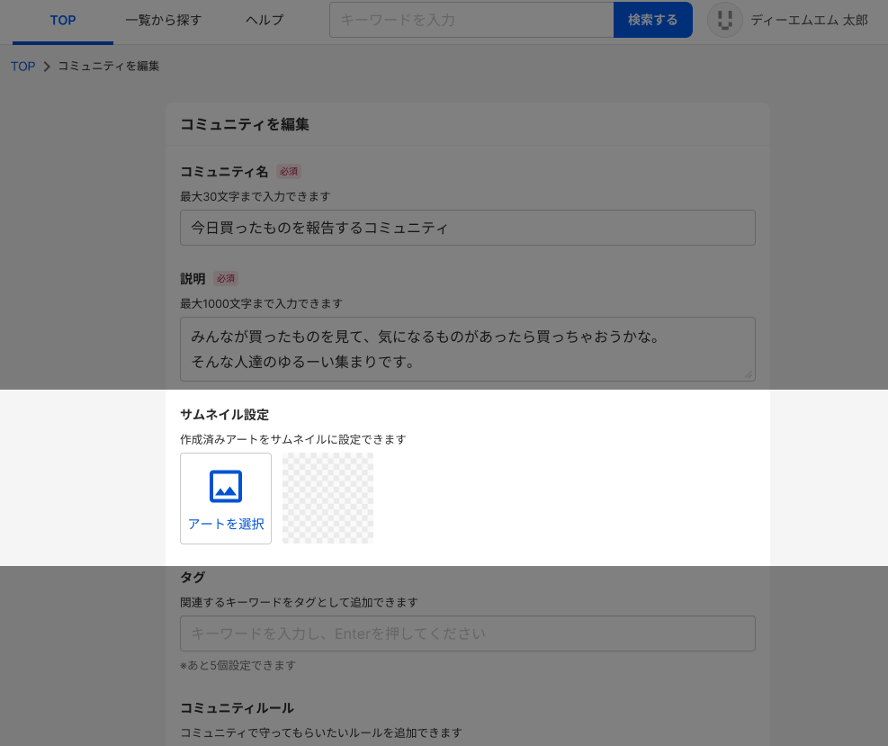 TOP > コミュニティトップ > コミュニティを編集 > サムネイル設定を押す