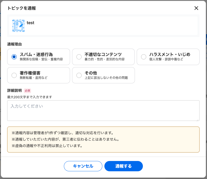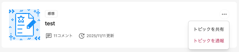 問題のあるトピックやコメントを見つけましたフォーラムのガイドライン・利用規約に違反するような問題のあるトピックやコメントを見つけた場合は、「…」マークから通報を行ってください。※通報内容は管理者が1件ずつ確認し、適切な対応を行います。※通報していただいた内容が、第三者に伝わることはありません。※虚偽の通報や不正利用は禁止しています。トピックを通報コメントを通報最近の閲覧数: 8トピックについてヘルプに戻る