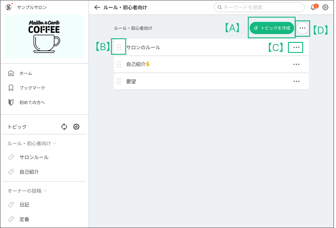 ※オーナーまたはスタッフ権限を持つユーザーは、自分以外のユーザーの投稿につけられたトピックを編集・削除・追加できます。