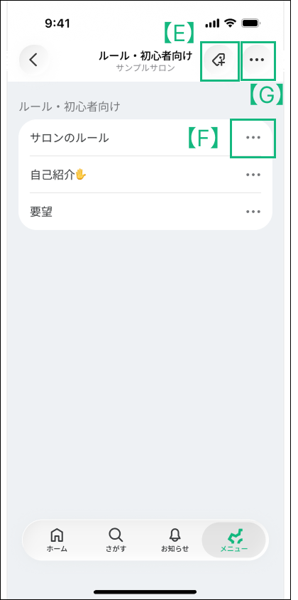 投稿にトピックをつけることで、テーマごとに投稿を整理できます。(iOSアプリの場合は右にスワイプ、もしくは左上の「≡」をタップして表示)