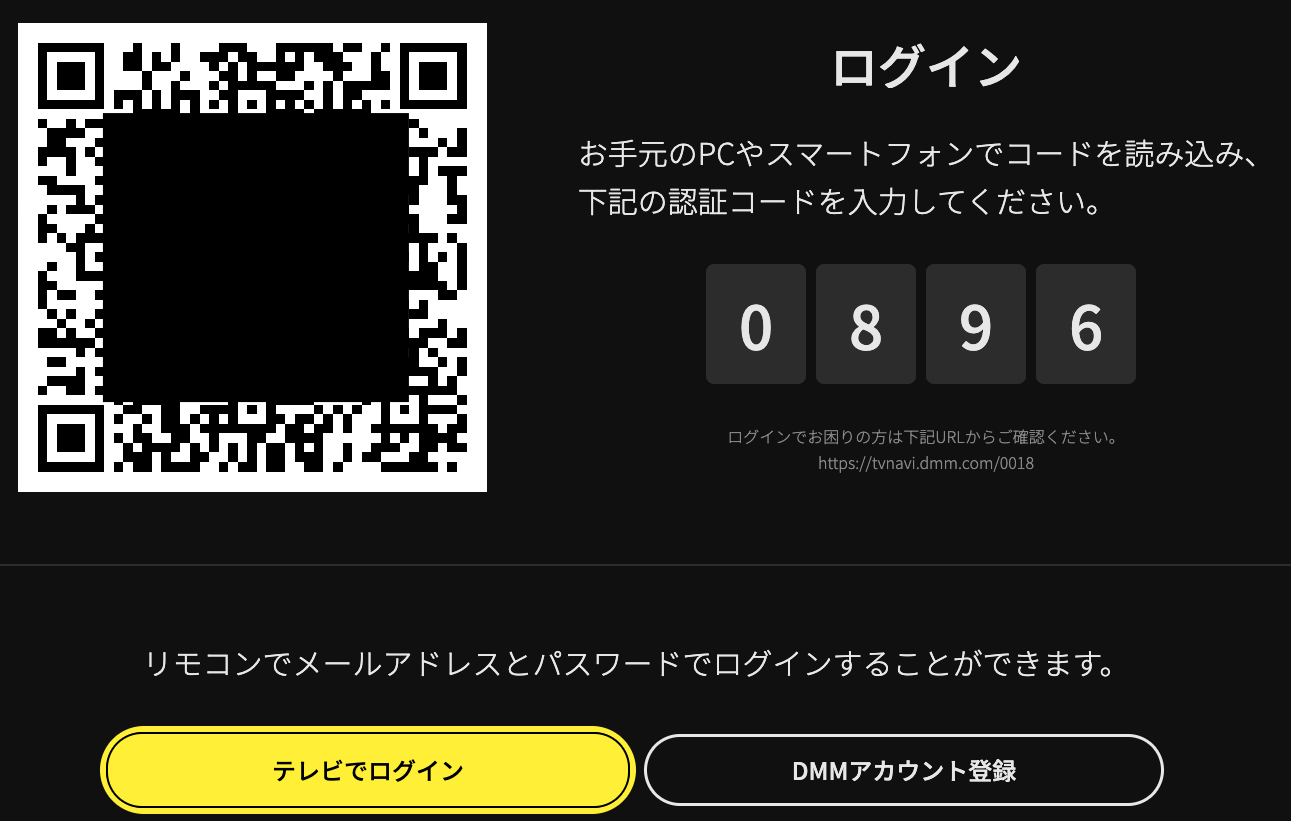 ※「テレビでログイン」を押すと、テレビ画面でメールアドレスとパスワードでログインすることもできます。スマートフォンでログイン